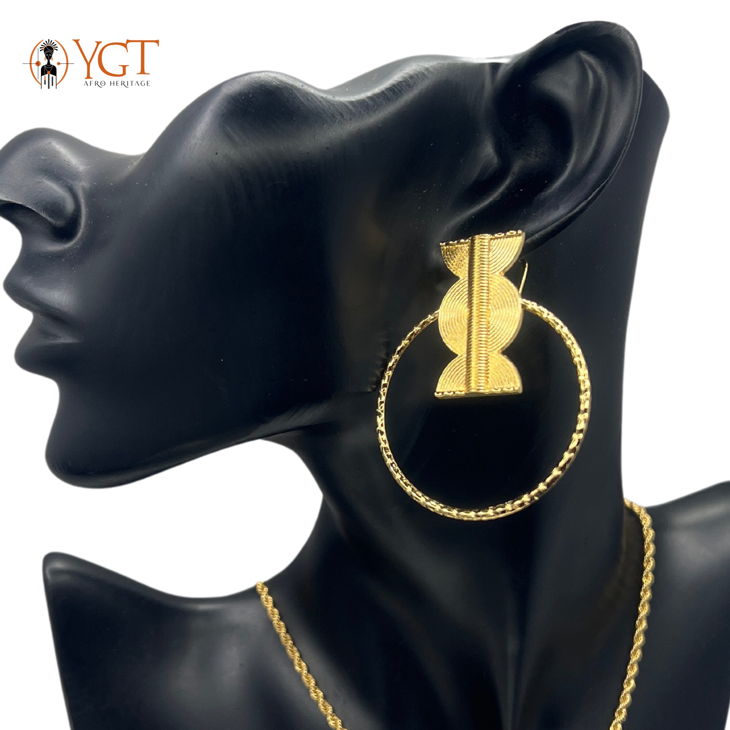 The Nala Jewelry Set, inspired by the Swahili name for “gift,” offers elegant geometric designs in 18K gold-plated copper alloy. This waterproof set is perfect for honoring your African heritage.